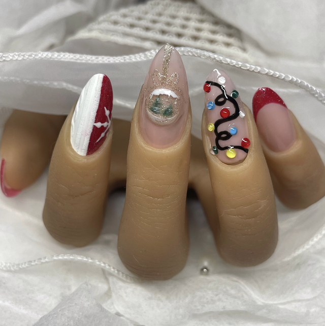 Un rouge profond orné d’une petite boule de neige et d’une fine guirlande dorée. L’esprit de Noël dans toute sa splendeur.